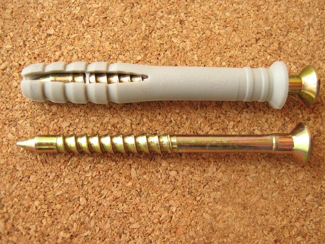 Дюбель также является крепежным изделием, но имеет ряд конструктивных отличий. Так, дюбель фиксируется в основание (например, стены) и только после этого в него вкручивается или вбивается другой крепежный элемент (шуруп, саморез). Если в случае с гвоздем, он может со временем ослабнуть и под влиянием вибраций или других факторов и вовсе выпасть из основания, в которое был вбит, то дюбель в этом плане более надежен, так как плотно зафиксирован и, к тому же, дополнительно расширен в отверстии после вкручивания в него другого крепежного элемента.