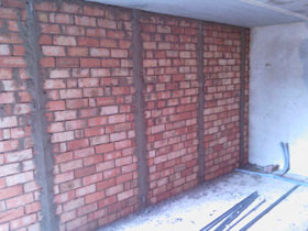- в зависимости от длины правИла, какое у вас имеется, размечаете стену на участки (не более 2-х метров) вертикальными линиями. Для "горбатой" стены отсчет начинаете от линий на выступах. Советую для для штукатурки пользоваться h-образным правИлом длиной 2.5м Оно прочнее, удобнее и имеет значительно меньший прогиб, чем трапециевидное;
