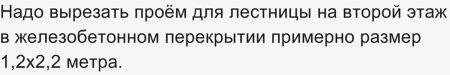 Если же вырезать проем по нужному размеру, то его никак будет не удержать, потому что вес такого куска составляет 1267 кг. Сила, с которой он упадет, будет превышать 10 тн и почти наверняка приведет к повреждению или даже поломке полового покрытия (тем более, если ниже расположен подвал), на которое он упадет. Кроме того, весьма вероятно, что окажутся поврежденными и стены, что может привести (при самом плохом варианте событий) к обрушению всего дома.