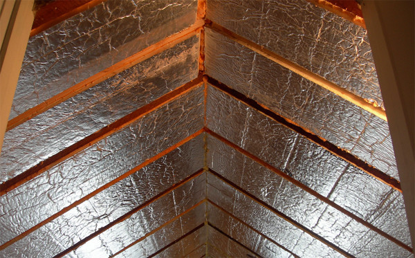 Пенофол фольгой к отапливаемому помещению.