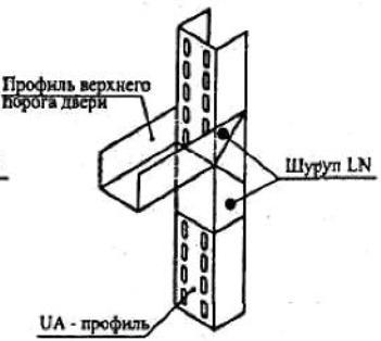 Небольшая сложность возникает при креплении горизонтального направляющего профиля в проеме к толстым стенкам UA-профиля. Обычно верхний профиль проема закрепляется с помощью просекателя, но стенку в 2мм он не возьмет, поэтому крепить придется саморезами по металлу со сверлом на конце, чтобы прошить 2мм стали.