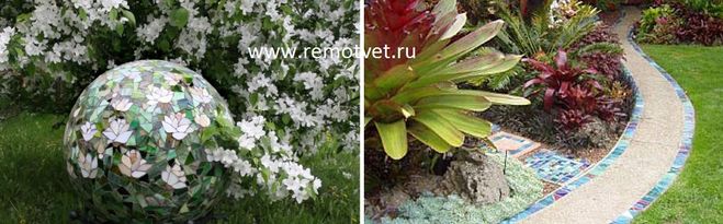 Всем желающим под силу овладеть искусством садовой мозаики. Было бы желание и достаточное количество материала для создания шедевров на своем участке. Для садовой мозаике подойдет абсолютно все, не обязательно использовать керамическую плитку, для этих целей подойдет: бой керамической или декоративной плитки, осколки фарфоровой, керамической,стеклянной посуды, галька, мелкие камни, цветной кварцевый песок, ракушки, декоративная крошка, монеты, крышки от бутылок, любой бросовый материал небольших размеров можно использовать с пользой.