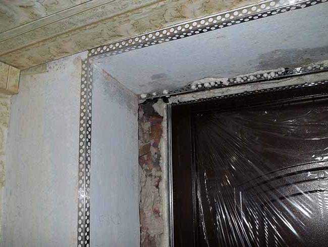 Разведите смесь строго по инструкции, отрежьте перфорированный уголок по нужному размеру.