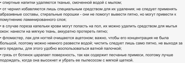 Если вам нужно провести влажную уборку, то не стоит использовать мыльные растворы, абразивные средства. Для этих целей лучше прибегнуть к специальному моющему средству для ламината.