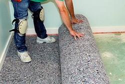 Этот метод от предыдущих отличается тем, что на предварительно подготовленную поверхность сначала клеится двусторонний скотч подложка, а уже на нее клеится ковролин. Клеится он либо на липкую ленту, либо на клей. В качестве подложки используют самые различные материалы, например, синтетический или полусинтетический войлок, также подойдет пенополиуретан. Такой способ также не подходит при использовании системы теплый пол.