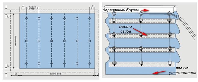 - на бруски в подгибах пришиваются колечки для протягивания в них шнура;