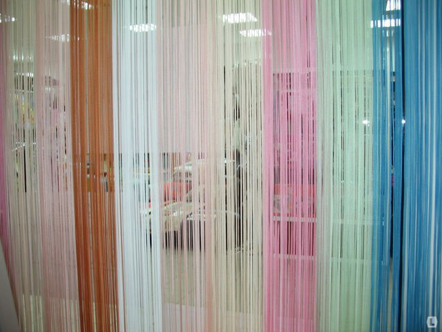 Однако я бы посоветовал автору вопроса изготовить жалюзи не из занавесов, а из нитей. Посмотрите, как они здорово смотрятся