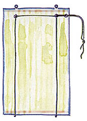 - в нижнюю и верхнюю части нарезанного тканевого полотка вставляются деревянные планки;