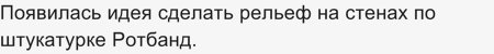Идея с приданием поверхности гипсовой штукатурки "Ротбанд" не плохая и имеет право на жизнь, но хочу сразу предупредить- если у Вас нет хоть каких-нибудь навыков с формированием рельефа (фактуры)- доверьте это дело специалистам. Качественно нанести на стены гипсовую штукатурку по технологии фактурной штукатурки с первого раза (без опыта)- пустая затея. Нужно тренироваться и набивать руку. Ведь гипсовая штукатурка "Ротбанд" по прямому своему назначению не предназначена для таких целей.