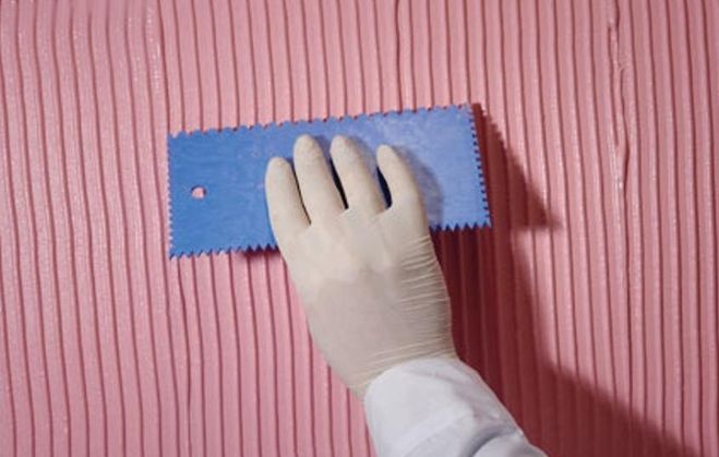 - Поверхность должна тщательно подготовлена (оштукатурена, обработана грунтом с кварцевым песком- это для хорошей агдезии и возможности формирования рельефа);