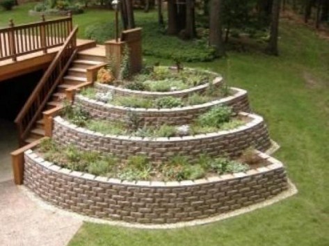 Красивая идея, это похвально. Но почему бы вам самим не пофантазировать? Например, сложить бордюры в виде китайской стены. Мини, конечно)) Что самое интересное, не надо будет выдерживать ряды по уровню, а мини башенки и площадки из кирпича сделать не сложно.