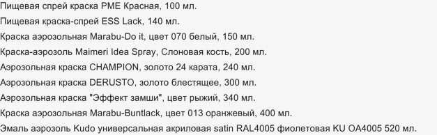 Баллончики с аэрозольной краской, это чаще всего нитроэмаль, которая очень быстро сохнет и обладает хорошими характеристиками после высыхания, долго сохраняет цвет, хорошо противостоит механическим повреждениям бываю самых разных объёмов. От 50-79 мл до больших около 600-700 мл, разные производители фасуют разные объёмом баллончики.
