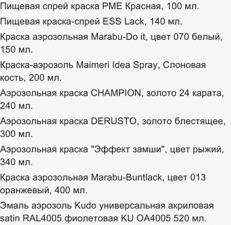 Какой объём? Встретил от примерно 60 миллиграмм до примерно 1 литра. Но это именно объём и не значит, что чем больше в баллончике содержится миллиграмм, тем больше поверхность можно покрасить, почему так - смотрите 2 пункт.