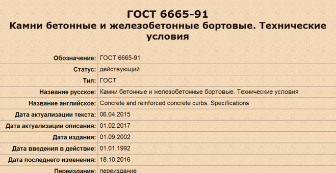 На бортовые камни (они же бордюры, как Вы пишите) есть свой ГОСТ, это