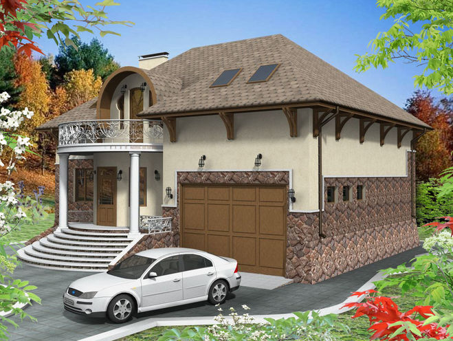 Где посмотреть интересный проект дома с гаражом и высоким цоколем?