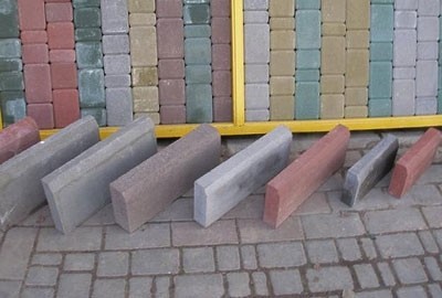 Вибропрессовальный бордюрный камень, цвета: серый, красный, коричневый, песчаный.