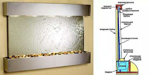 Фото одного из вариантов конструкции домашнего водопада и схему его устройства прилагаю