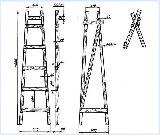 Сделать стремянку своими руками не так уж сложно. Проще всего ее сделать из дерева. Для этого понадобится обычная ножовка, стамеска, рулетка, наждачка, карандаш, угольник, молоток и сверла. И конечно материал, а именно брус сечением 40 на 70 мм, саморезы, болты и цепи для фиксации стоек.