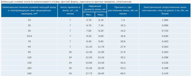 Таблица 1. Активное сопротивление токопроводящих жил изолированных проводов марок СИП-1, СИП-2, СИП-4 при 90 градусах C.