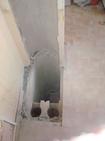 На первом этаже нижняя часть короба (ниже вентиляционного отверстия) также не задействована и ее "умельцы" частично убирают.