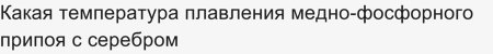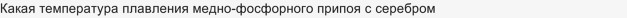 Температура плавления медно-фосфорного припоя с серебром колеблется в пределах 710-820 градусов в зависимости от процентного содержания составляющих припоя. Такой вид высокотемпературного припоя используется для пайки изделий из бронзы, латуни или меди. Чаще всего в его состав входит 90 и более процентов меди и более 6 процентов фосфора. Некоторые виды припоя содержат и серебро. Интересно, что использование таких припоев не требует применения флюса.