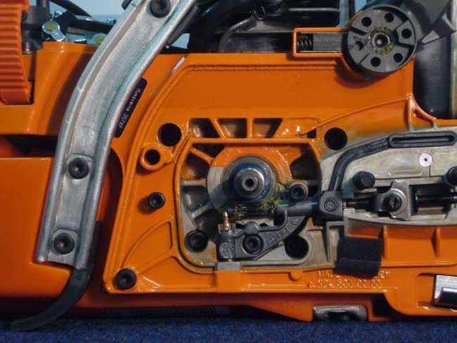Придётся потрудится, нужно снять крышку с тормозом, цепь, шину.