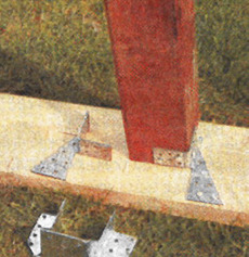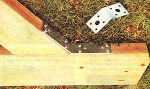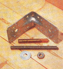 Угловая консоль с упрочнением угла выштамповкой эффективна для скрепления тяжелых балок к кирпичной кладке. Так, в кладке на дюбелях закрепляют резьбовые шпильки в стороне от швов, после чего привинчивают угловую консоль. Существуют угловые накладки до 135 градусов: