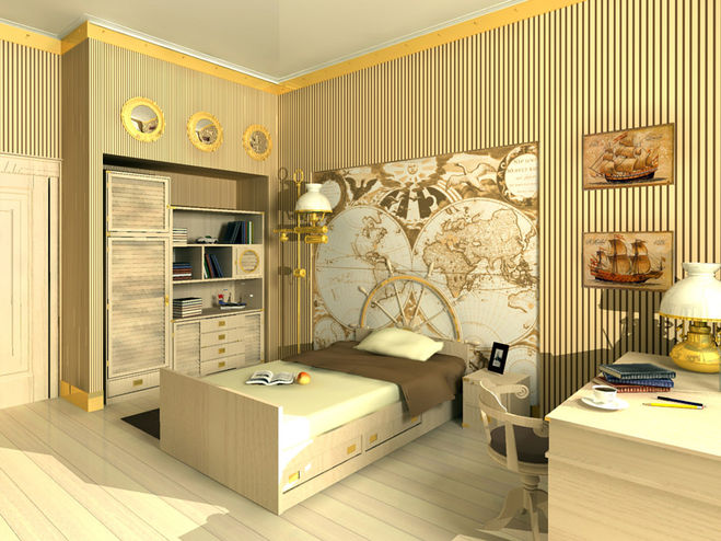 Обои можно брать не дорогие, всё равно он своими плакатами заклеит бОльшую часть стен комнаты.