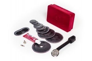 В набор "заплатки" различного размера, клей, причём самовулканизирующийся (клей резиновый) ролик с тёркой, вместо наждачной бумаги.