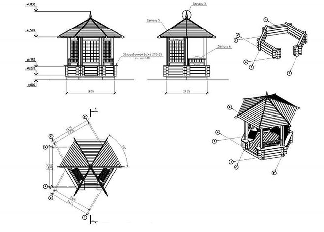 Нормальный проект с чертежами шестигранной беседки из дерева в самом деле не просто найти в интернете. Но их можно заказать у соответствующих компаний, но это платно, где цена за составление проекта договорная.