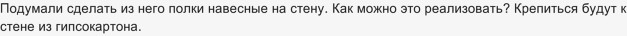 Тут очень важно знать некоторые моменты связанные с полками (навесными) из гипсокартона и на гипсокартоне.