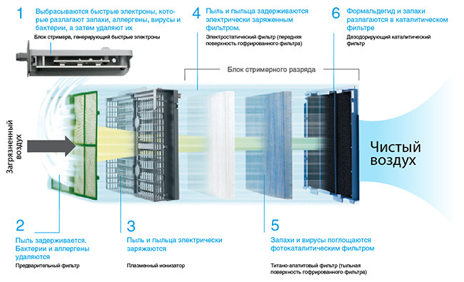 Есть очистители воздуха с четырёхступенчатой системы с пяти очистки есть даже и с семи ступенчатой.