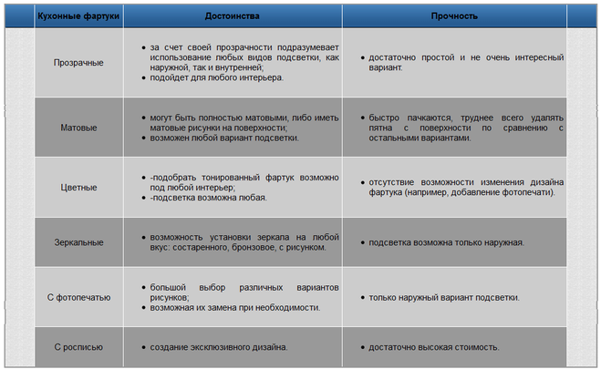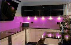 Есть более дорогой вариант это когда подсветка (LED-подсветка) находится между стёкл кухонного фартука, то есть сам фартук состоит из двух стёкл.