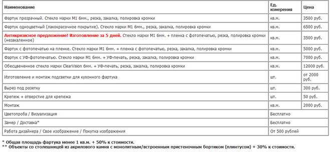 На доставке фартука и комплектующих для установки, можно сэкономить, а за всё остальное придётся платить, фартук с подсветкой это дорого, но безумно красиво.