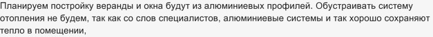 В данном случае, или Ваши мастера ошибаются насчёт "хорошо держат тепло", или речь идёт о высокотехнологичных и чрезвычайно дорогих алюминиевых профилях с термоизолирующей прокладкой (полиамидной) что не совсем логично в случае с не отапливаемой верандой.