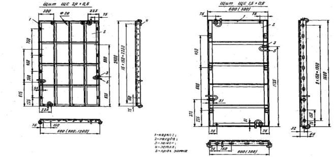 - несущих элементов - схваток, которые объединяют щиты в панели и блоки.