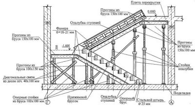 Для ознакомления прилагаю, к ответу, фотографию грамотно выполненного чертежа опалубки лестничных маршей.