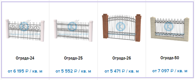 Вот посмотрите сами. Известная компания "Очаковский комбинат ЖБИ", которая уже четверть века работает в этой сфере и давно себя зарекомендовала с положительной стороны, предлагает замечательные ограды и ворота. И в их каталоге есть, что выбрать!