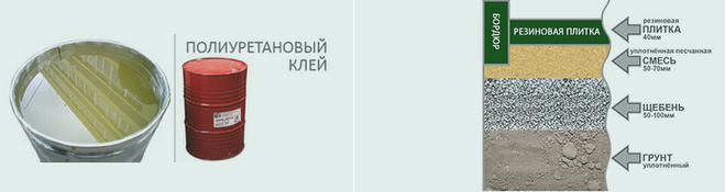 Резиновая брусчатка укладывается в стык, если это бетонное основание то монтаж (как правило, есть и другие варианты) осуществляется на битумную мастику.