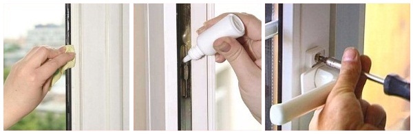 Самое правильное решение , это купить вот такой, или подобный набор для ухода за окнами ПВХ, обратите внимание на комплектность (для примера привожу набор "EdelWeiss")