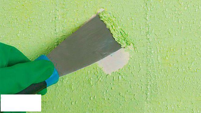 (работает и по водоэмульсионной краске в том числе), или работаем механическим путём (шлифмашинка, шпателя и так далее).