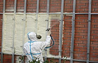 Монтируем обрешётку под финишный материал (сайдинг к примеру) напыляем ППУ всплошную на фасад здания.