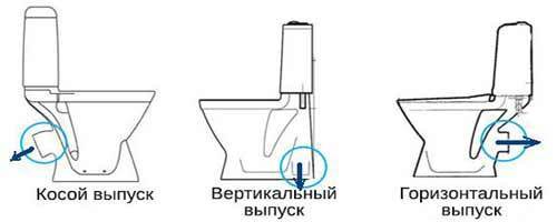 Унитазы-компакт различаются на виды по выпуску отходов:
