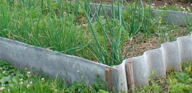 Я решил эту задачу методом исключения. Материал должен: а) быть экологичным; б) не гнить; в) не стоить денег. Значит, исключаем пластиковые, резиновые, деревянные и шиферные бордюры.
