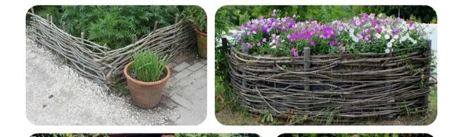 Еще можно сделать бортики из лежащих в одном направлении сухих веток, ежегодно состригаемых с малины, смородины и крыжовника. Или сплести из ивы, что трудозатратнее, но эстетичнее. Малиновые и крыжовниковые старые побеги будут хорошей защитой от слизняков. И они хороши тем, что не придется вредить — стричь живую иву.