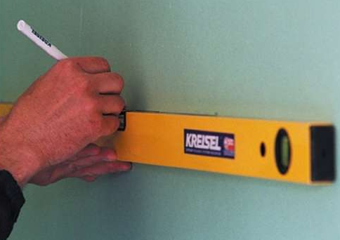 Если ни чего не делать правильно и не шпаклевать гипсокартон, то горизонталь вылавливается уровнем, приставляем уровень к стене, прочерчиваем линию (лучше карандашом, что бы потом стереть).