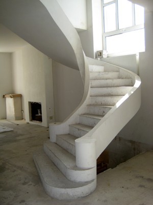 она просто облицовывается , вариантов масса к примеру клинкерная плитка, подступенок сажается на клей.
