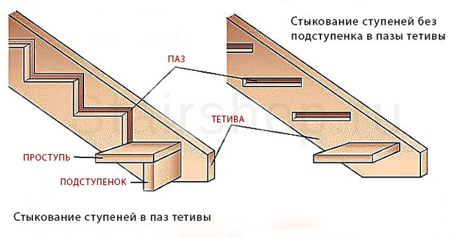 Пазы в проступи и подступенки, тоже вариант, но требующий и определённого опыта и инструмента.