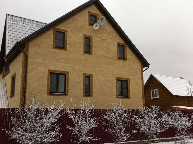 Прикладываю фото дома с вентилируемым фасадом из ракушечника.