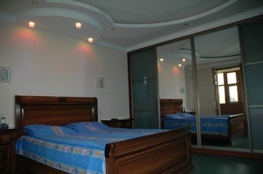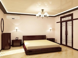 Наверное надо сразу же отметить, потолок в спальне "не живёт" своей жизнью, потолок есть смысл (правильный вариант) привязать к общему интерьеру помещения, в даном случае это спальня.